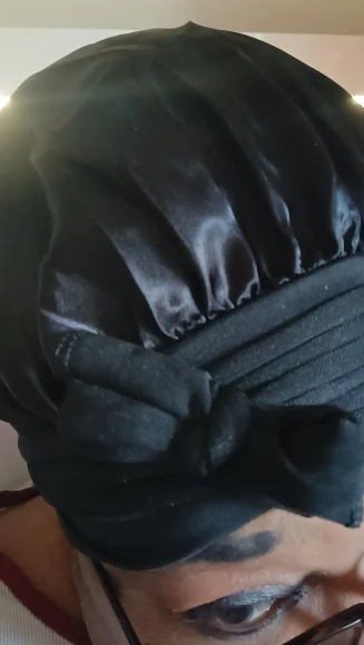 I love the sleeping cap it is so comfortable and soft the new satin sleeping cap i'm going to have to get the pink one because pink is my favorite color and i don't know why i didn't get the pink i believe they probably was out of it but i will go back and get me a couple of more i thought i made an excellent choice very comfortable 🖤
